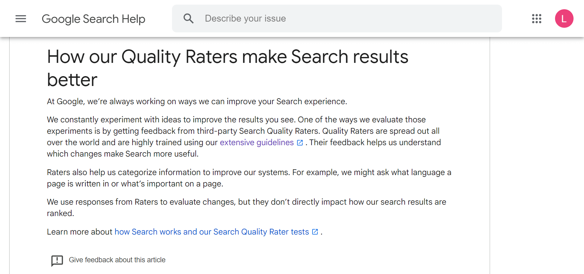 Google’s Search Quality Rater Guidelines is a 172-page document that informs Google’s human website evaluators. It tells them what to look for when rating the quality of pages that are ranking on Google.