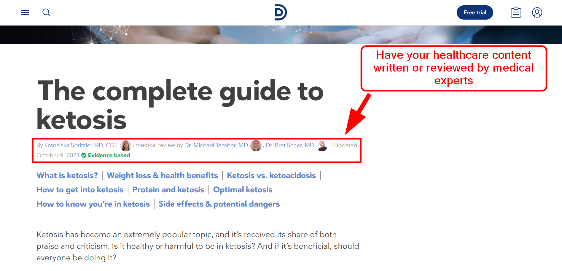 As a healthcare brand, having a medical expert write or at least review your content is extremely beneficial.
