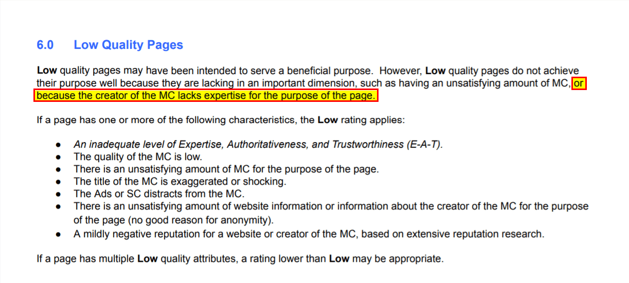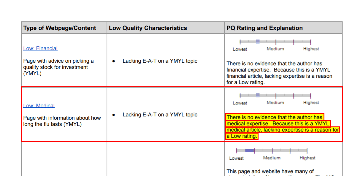 If your healthcare content fails to be written or reviewed by a medical expert, it’ll likely be deemed low quality. It states this very clearly on page 33 of Google’s Search Quality Rater Guidelines.