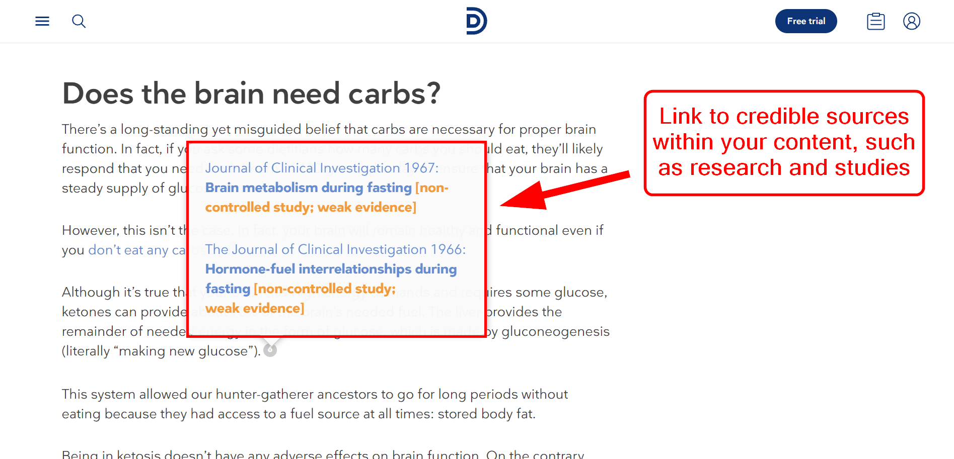 When it comes to healthcare content, you should be referencing scientific research and studies. Look at how the example below does it: