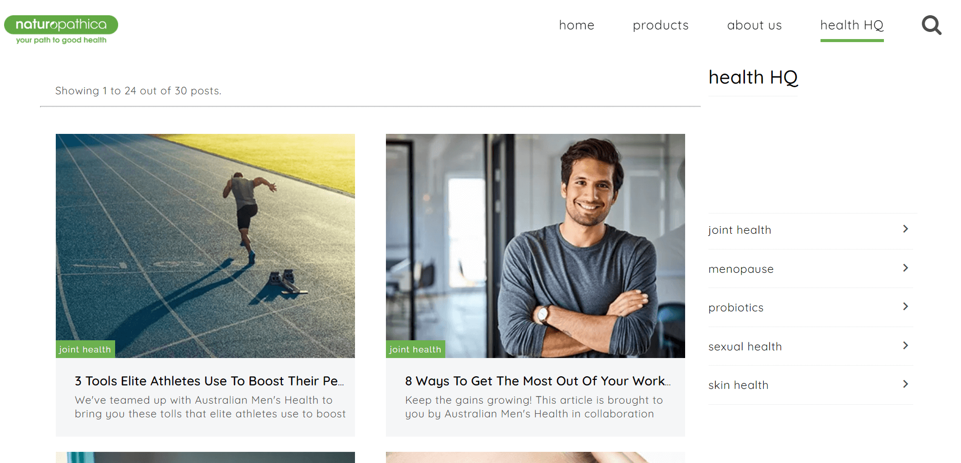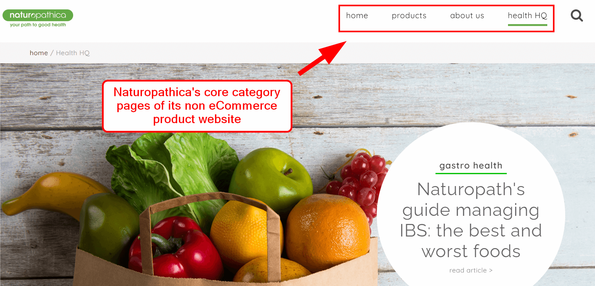 For example, Naturopathica has a home page, a products page, an about us page, and a blog page.